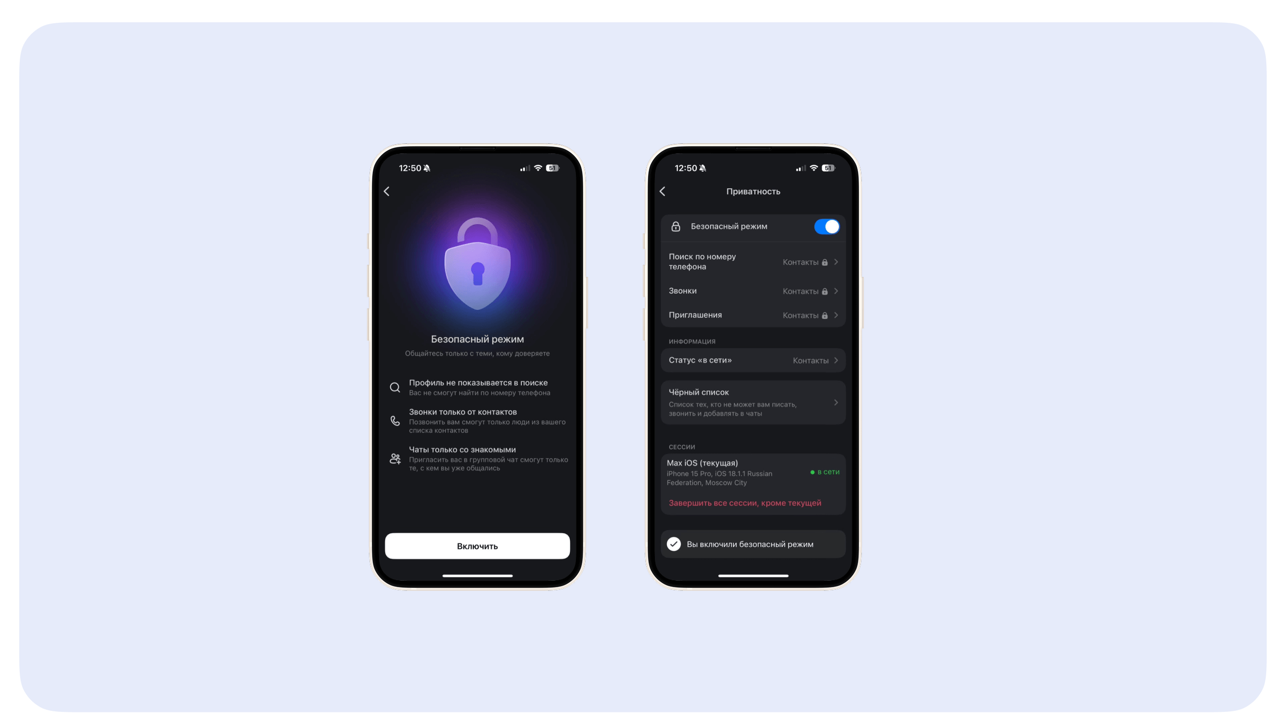 Для отключения Безопасного режима нужно снова открыть раздел Приватность и нажать на переключатель справа напротив Безопасного режима